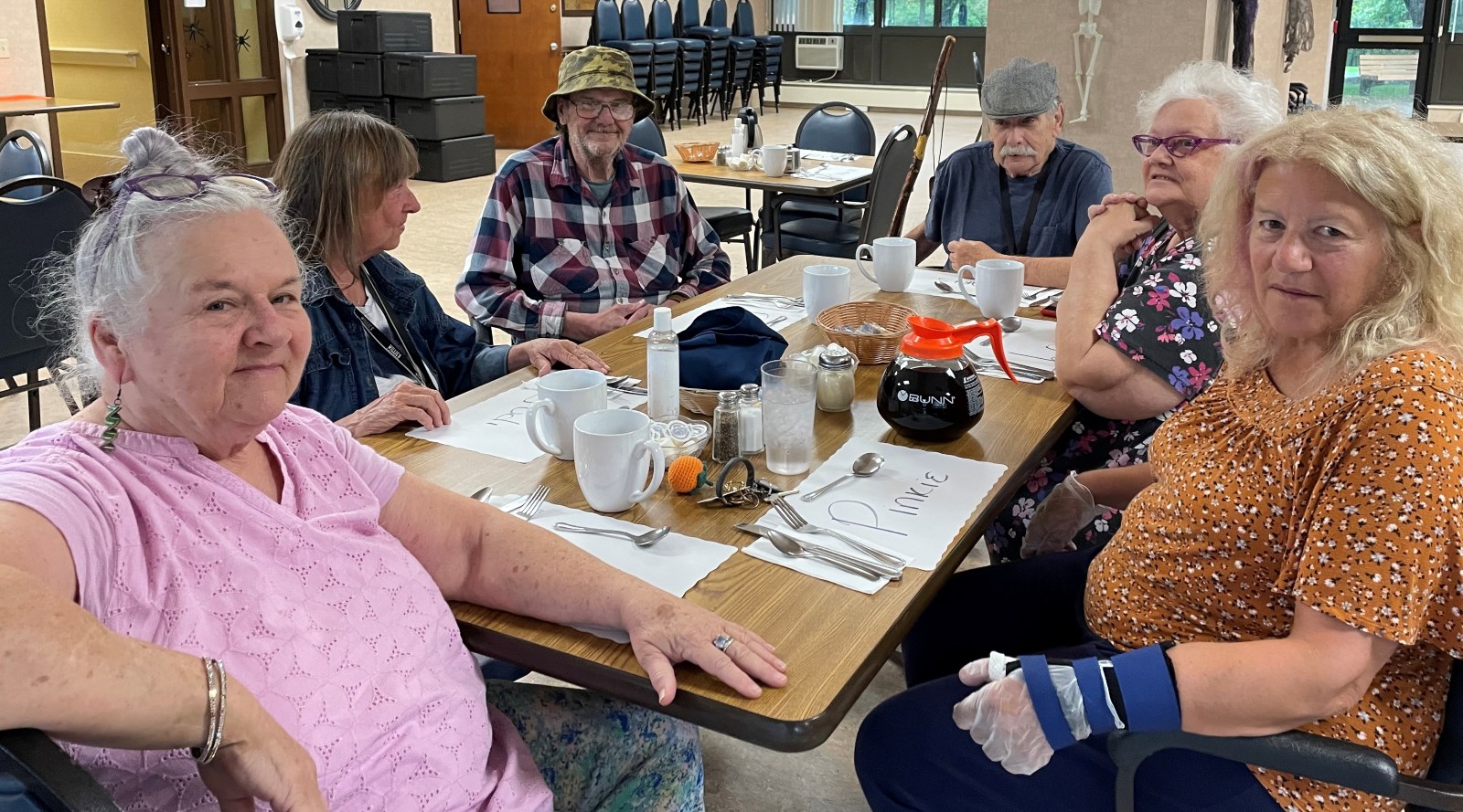 The self-dubbed “Team Table 3” gather for lunch at Shalom Apartments in Warwick (from left): June Perry, Judi Case, Rick Kinney, Chris Young, Lois Clemens, Joanne “Pinkie” Gianfraccio.