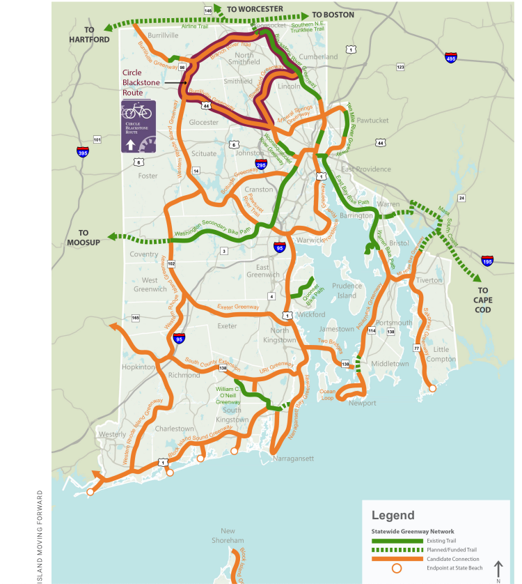 RI State Greenways Plan Map. Photo courtesy from 2050 Long Range Transportation Plan